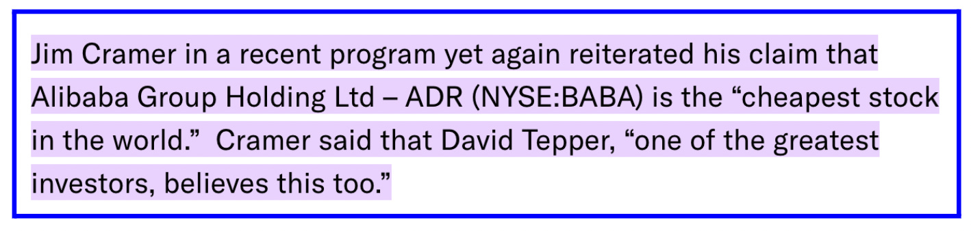 No wonder David Tepper thinks Alibaba is the cheapest stock in the world.